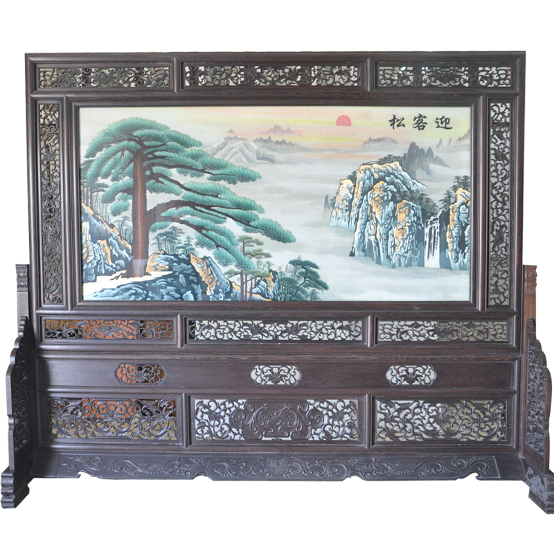 風景玄關屏風 雙面繡酒店隔斷 迎客松 手工刺繡 包物流精品推薦